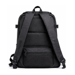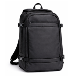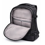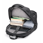 Integra un sistema de carga o dispositivos inteligentes mediante puerto USB externo, combinado con compartimentos acolchados de protección estructural y diseño ergonómico con panel respirable. Su construcción en poliéster de alta densidad ofrece resistencia, seguridad y funcionalidad en un formato híbrido mochila-maletín.